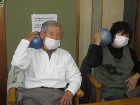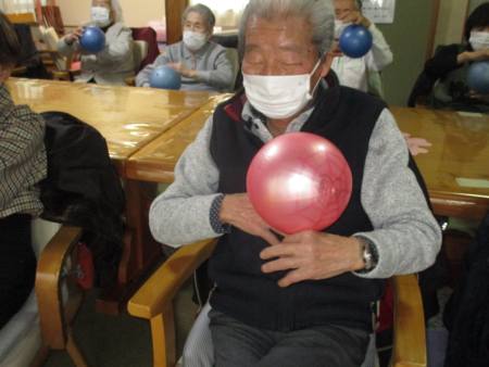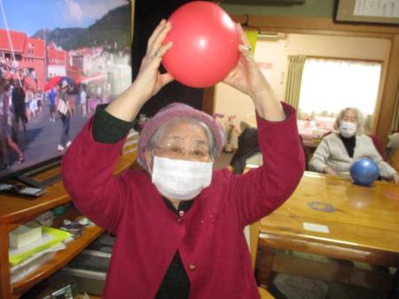 午前のレクは、ボール体操です。
