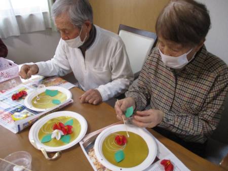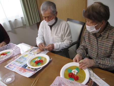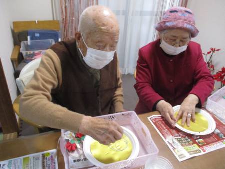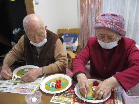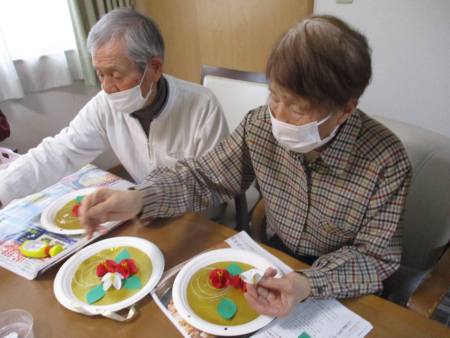 午後レクの前に父・母がせっせと作品作りをされました。