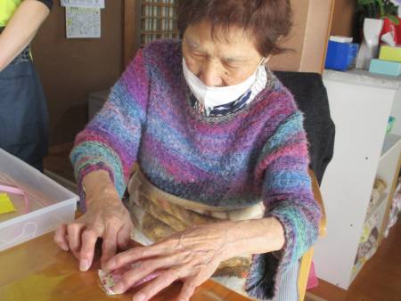 この綿にアロマオイルで香りを付けて匂い袋にしていきます