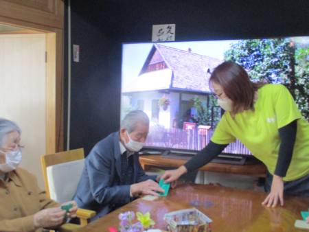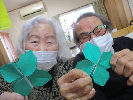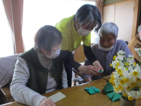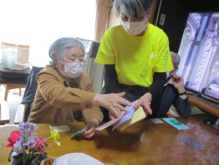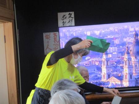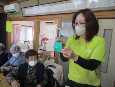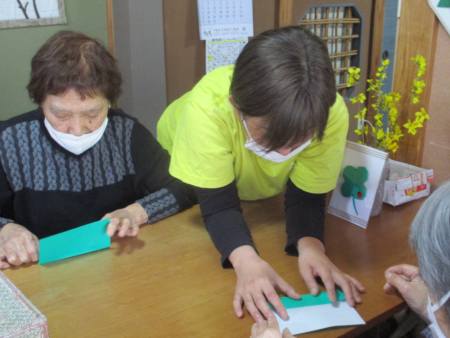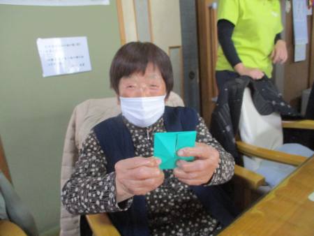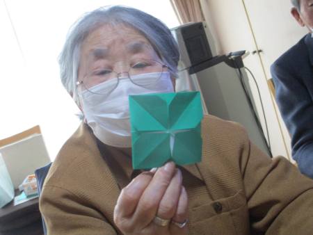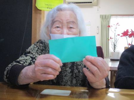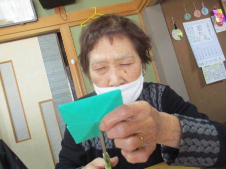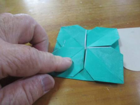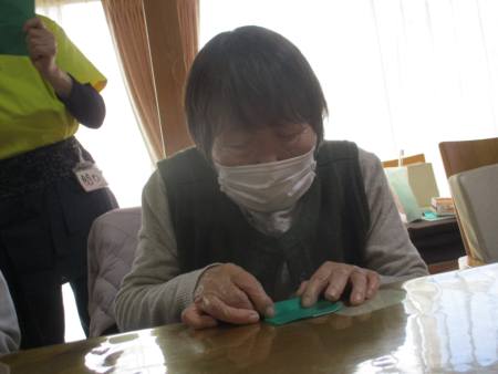先ずは、緑色の折り紙を1枚