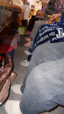 「よっこらしょーー」と足を持ち上げて