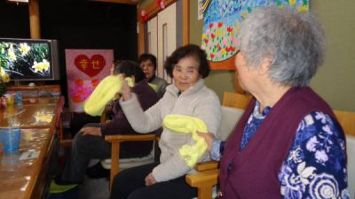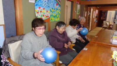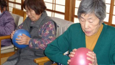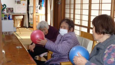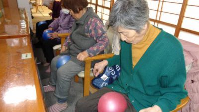 幸望庵ではボールやタオル、ハンドクリップなど様々な道具を使いながら機能訓練を日々実施しています