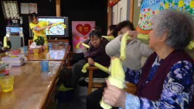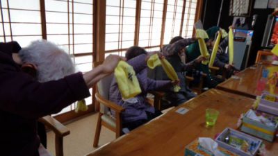 タオル体操で日常生活動作をよりスムーズにする運動もおこないました