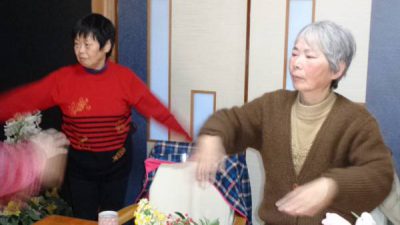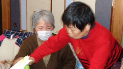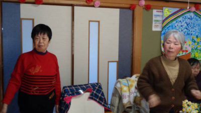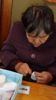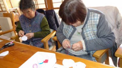 今日のレクは簡単手工芸という事で、チクチクと丁寧に縫い上げていきます