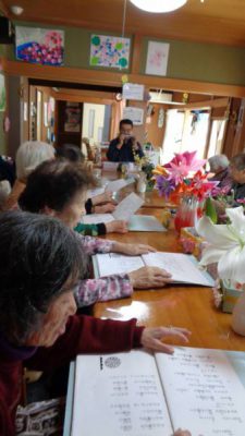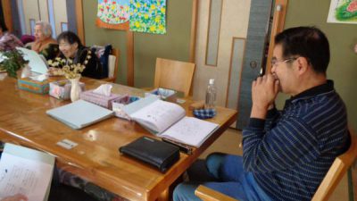 懐かしい音色で曲に合わせ皆さんと歌いながら