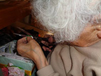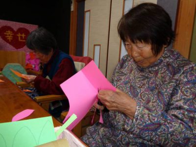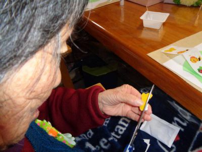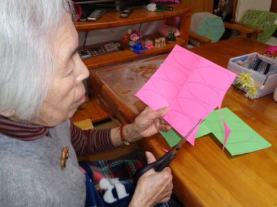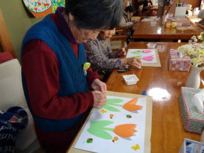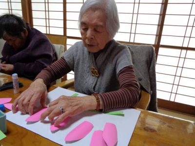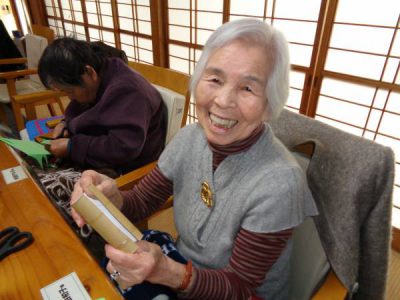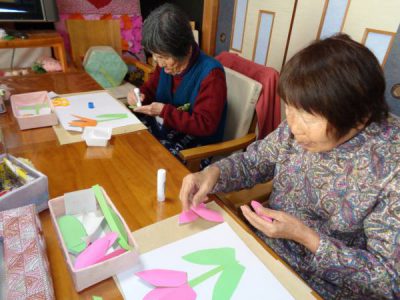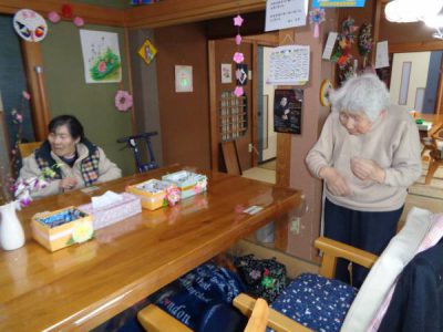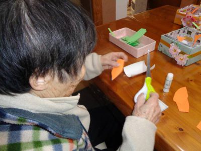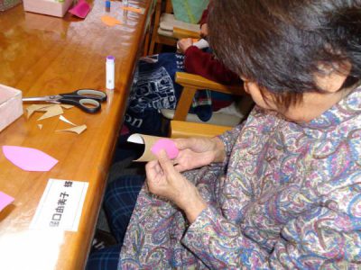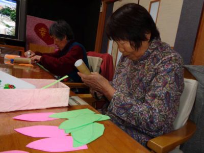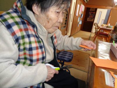 さて、今日のレクは手工芸です