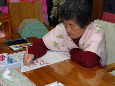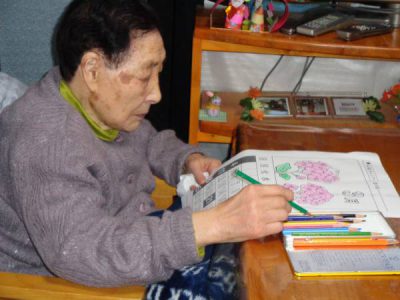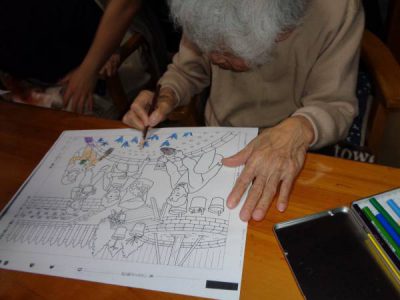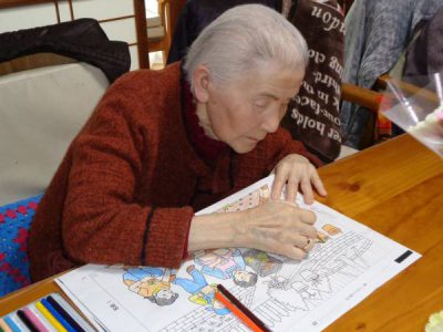 他のお母さんは黙々と色塗りを鉛筆指でOK