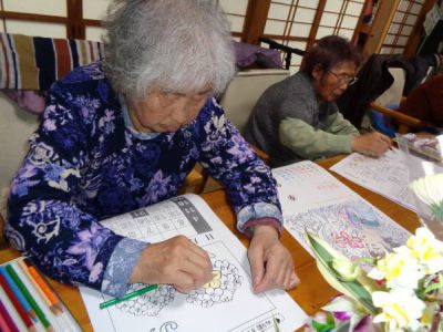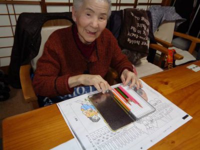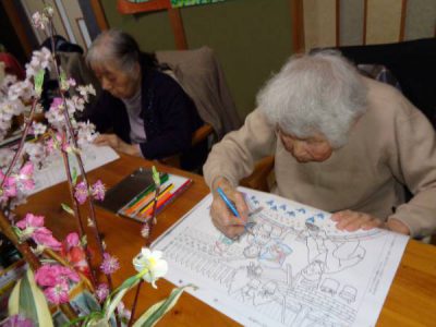 午前レクは、カレンダー鉛筆 ・桜季節の塗り絵をやる方と・・・
