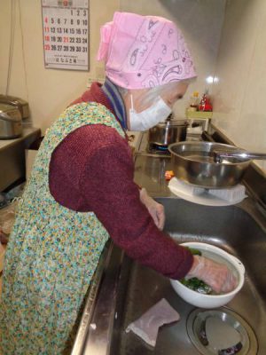 野菜を洗うお母さんムード揺れるハート  ヨーグルトもありますね目揺れるハート