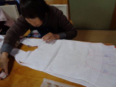お裁縫の得意なお母さんが多いので、今日はチクチクと行きましょう