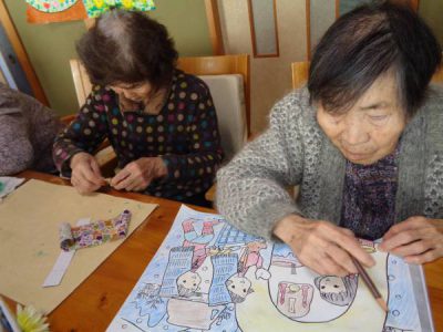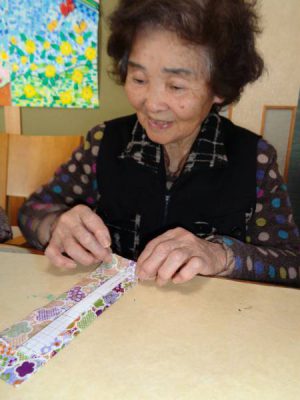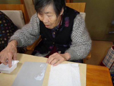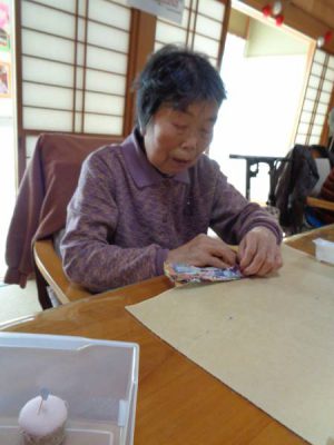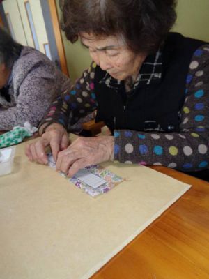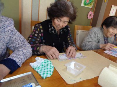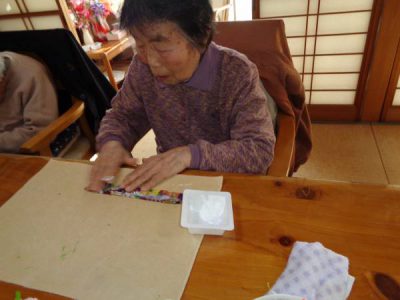 こちらのお母さんは、厚紙にボンドを塗ってます。