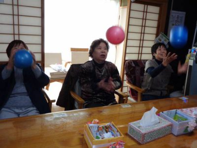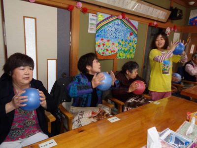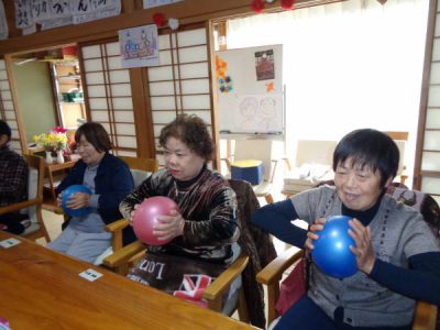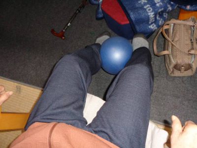 お楽しみ外出の前にちょっとだけボール体操をしました