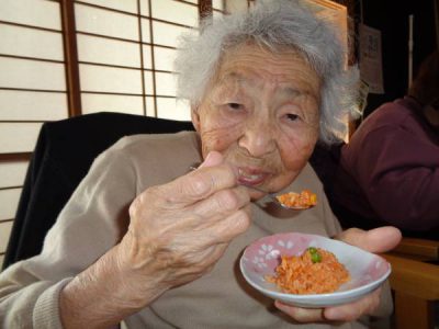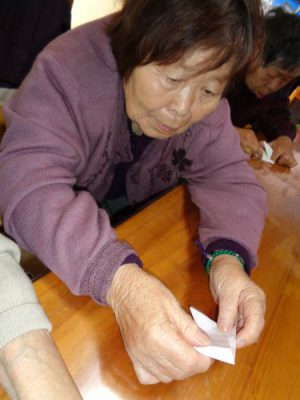 朝の検温の様子です 幸望庵では毎朝、お母さん方の血圧と体温を看護師が測定していて、