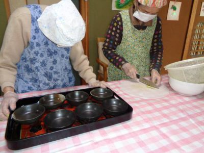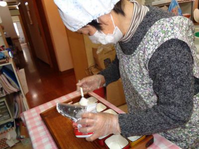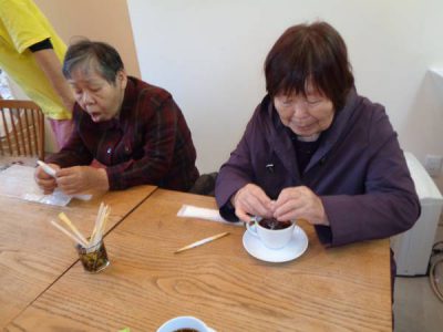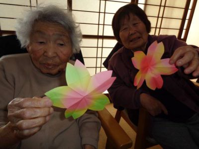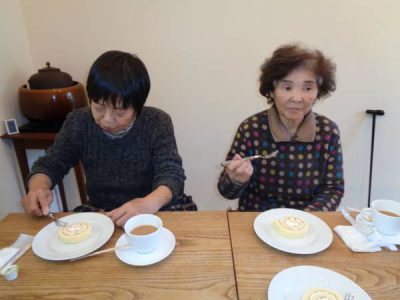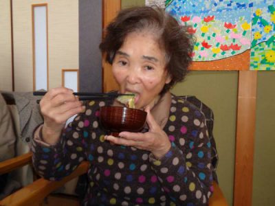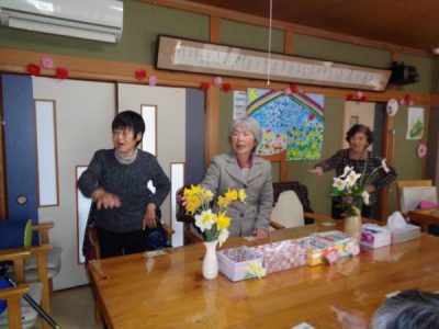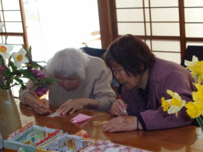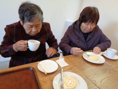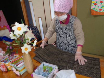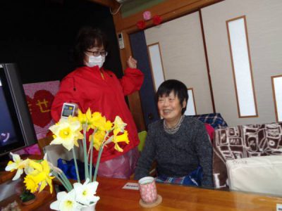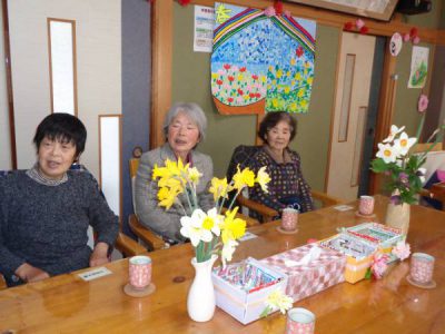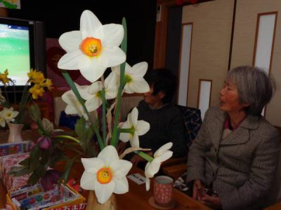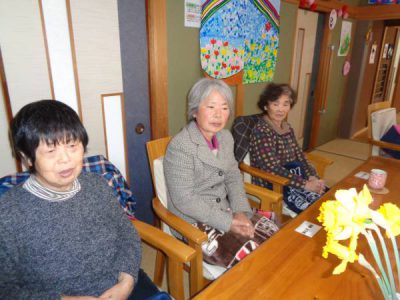 ご利用者様の御宅で摘んで下さったクリスマスローズが、庵内を明るくしてくれています