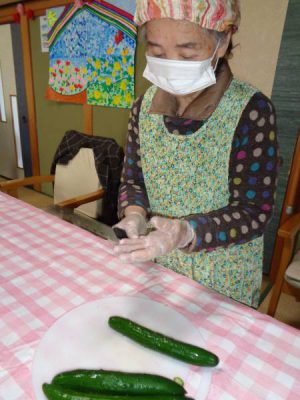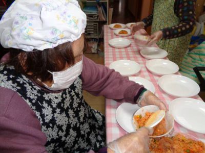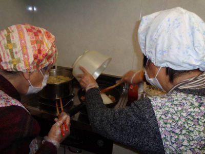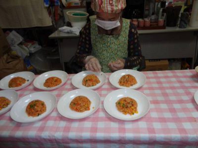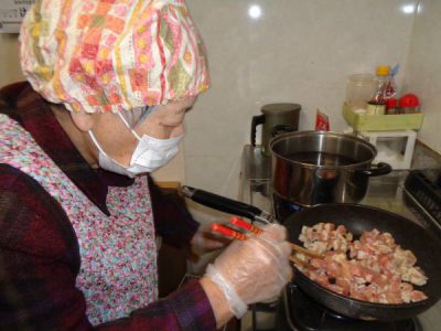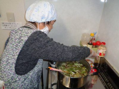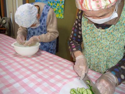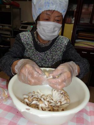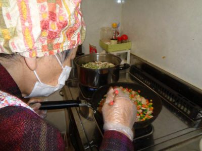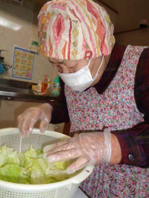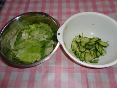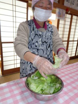 鶏肉やしめじ、レタスなどの下ごしらえをしています