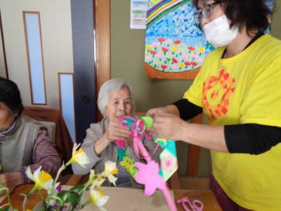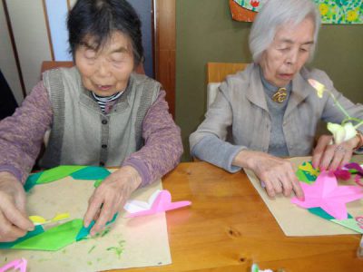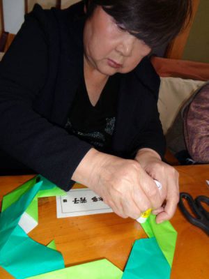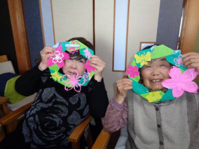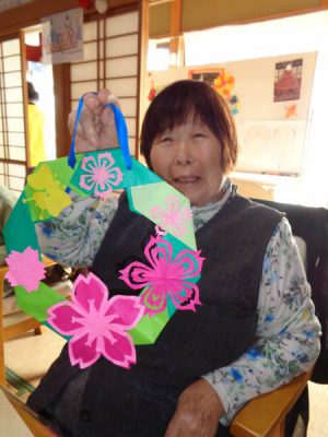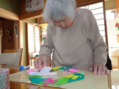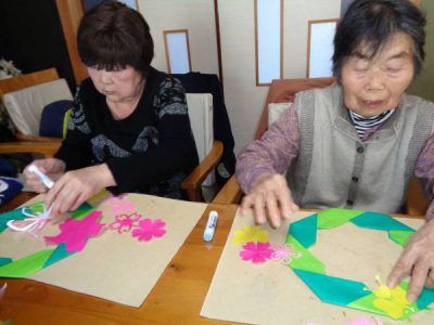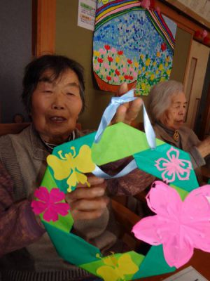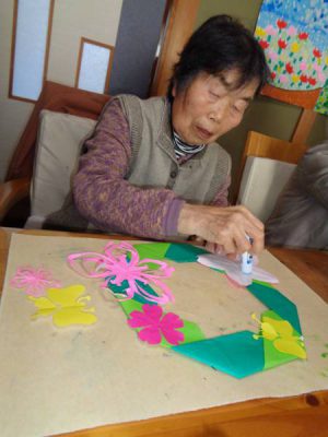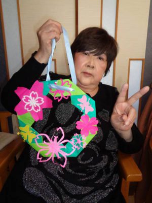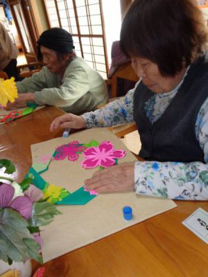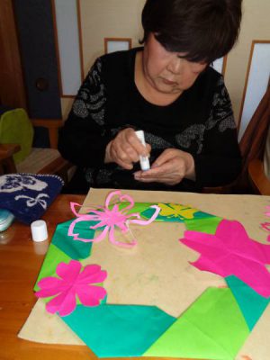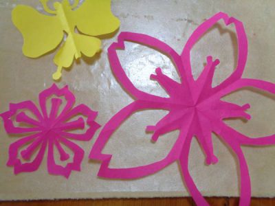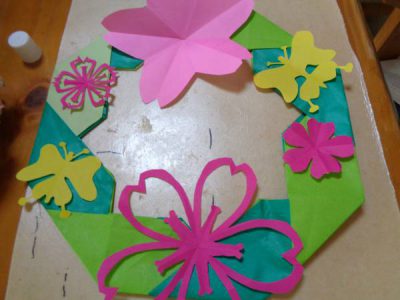 桜のパ-ツを糊で貼ってリボンをつけて完成