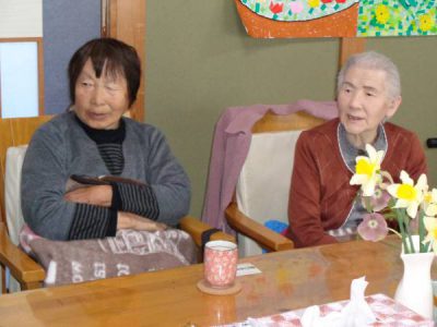 幸せの笑顔です 桜も綺麗お母さんの笑顔負けませんよ