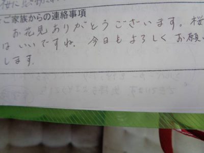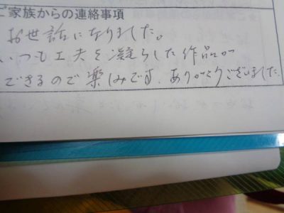 家族様より暖かいお言葉をいたたきました手 (チョキ)