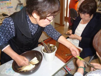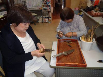 昼休みには、機能訓練で「たけのこ」の皮剥きですわーい (嬉しい顔)わーい (嬉しい顔)