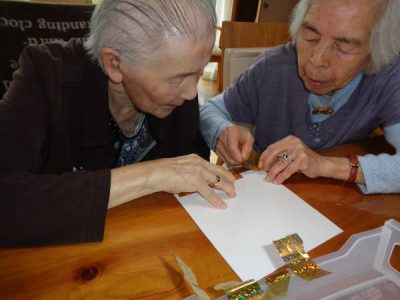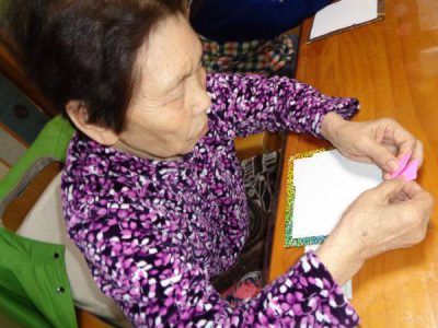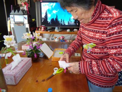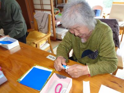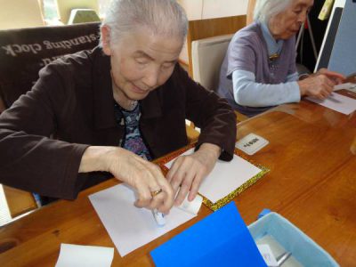 台紙の飾りを作っています・・・いつもていねいに