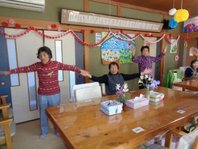 午後も体操からスタ-ト—————–