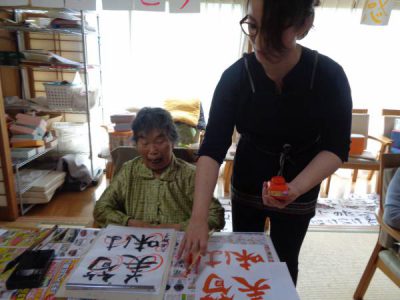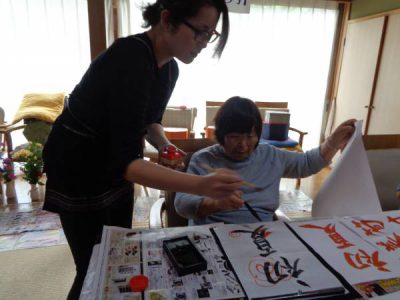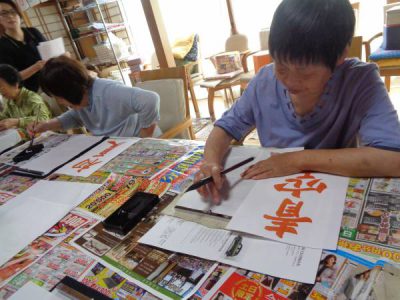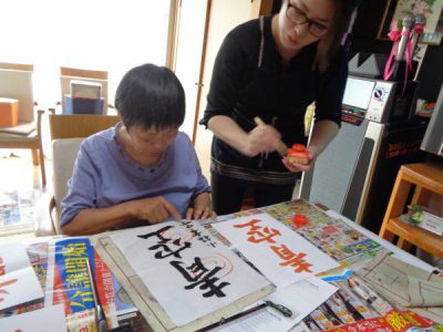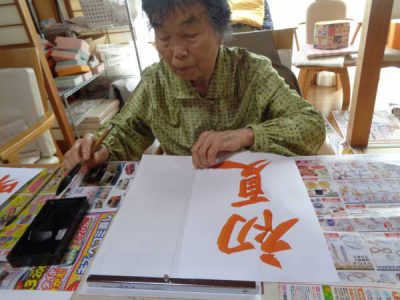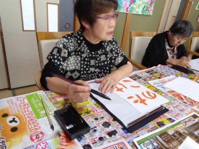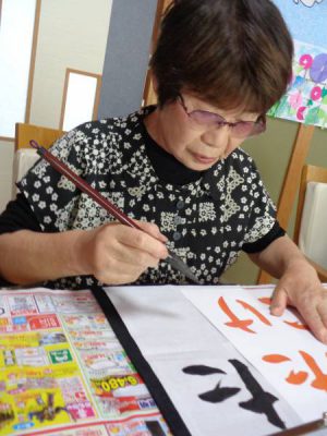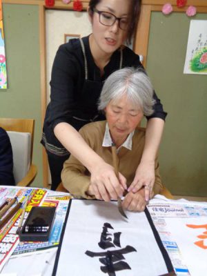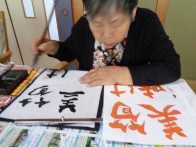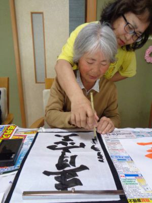 何年ぶりかに筆持ったので筆の持ち方からも解らなくてでも先生が、書く場所を折ってやったらと言ってくれたのでなんとか字になり嬉しかったです。