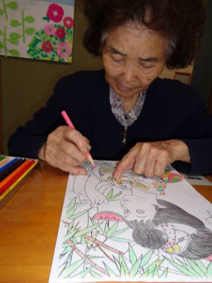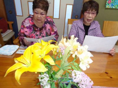 隣のお母さんに聞ながら楽しく脳活性を楽しまれました