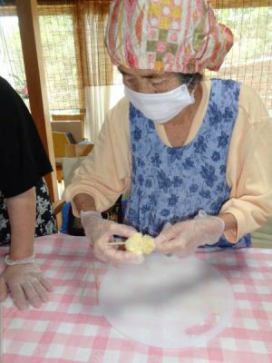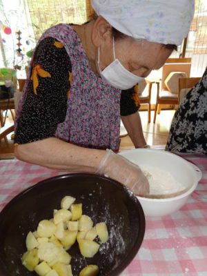 お芋さんに皆で流れ作業で衣と言う名のお洋服を着せて行きます目がハート (顔)目がハート (顔)
