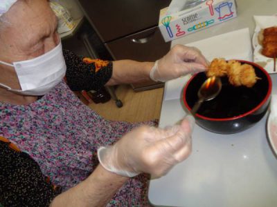揚がったお芋に秘伝のソースをかけて完成ですぴかぴか (新しい)ぴかぴか (新しい)ぴかぴか (新しい)うれしい顔