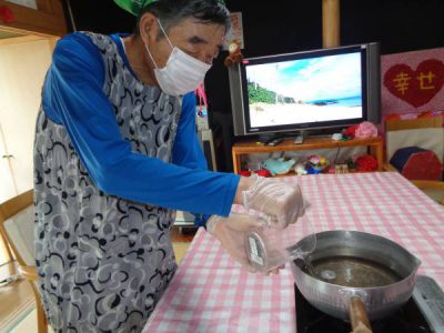 お父さんもエプロンつけて、参戦です