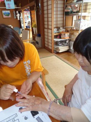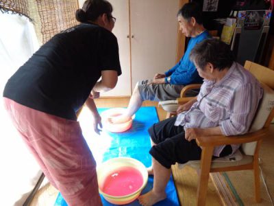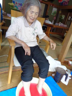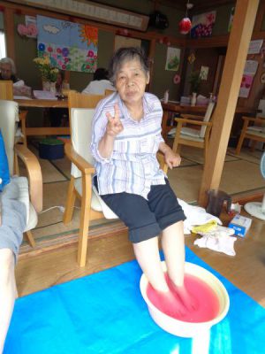 お母さんは足湯とネイルを楽しまれました