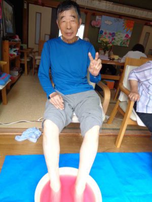 お父さんは足湯での~んびりと