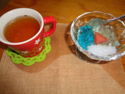 おやつは午前作ったゼリ-