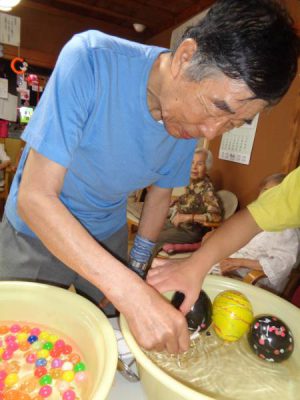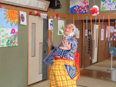 こちらのお父さんは南京玉すだれの皆さん達になりきって