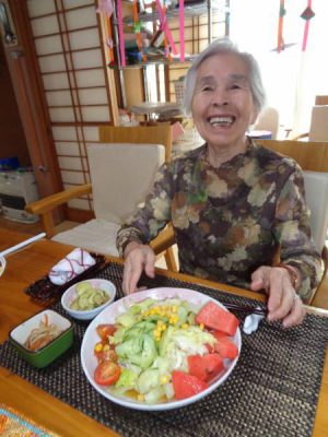 今日は、調理の日で、お母さん達 はりきって昼ごはんを作って