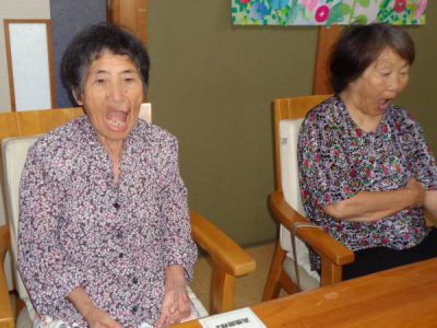 大きくくちを開けて  ア イ ウ ベ—–わーい (嬉しい顔)