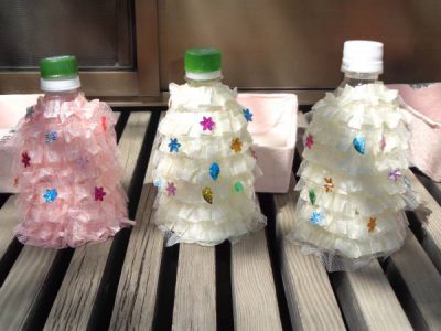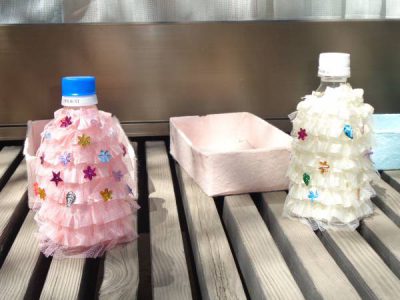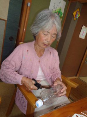 ペットボトルの蓋を外して、半分の大きさにカットしていきます