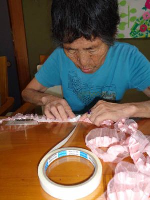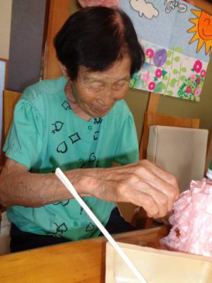 皆さん、とっても真剣に丁寧に貼ってくれています