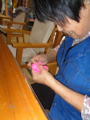 縫って 飾りをつけ————–
