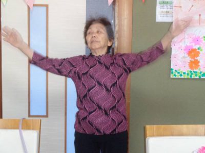 午後も体操からス-タトー (長音記号1) ー (長音記号1) ー (長音記号1)手 (チョキ)