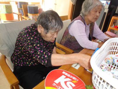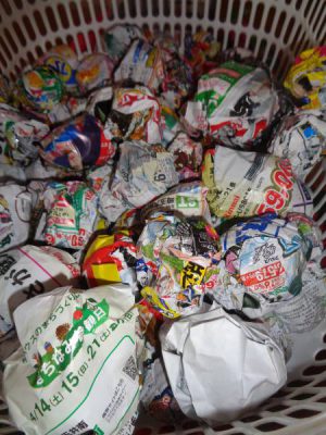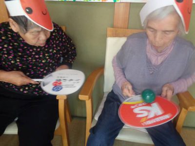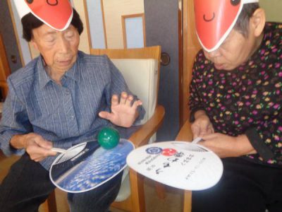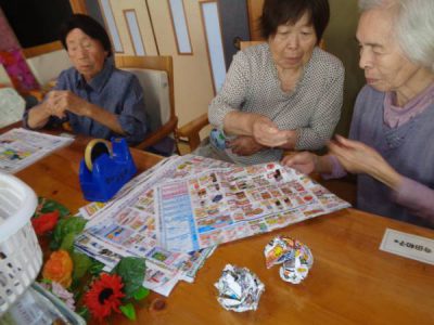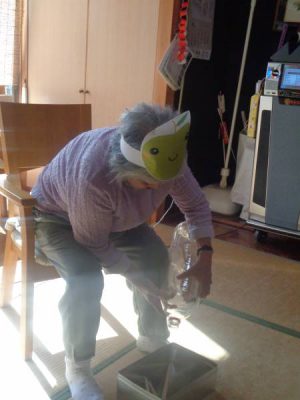 午前皆さんで作ったチラシボールで玉入れ