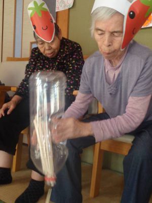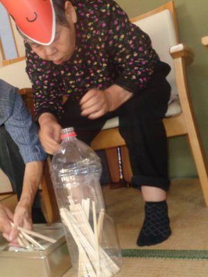 なかなか割り箸が出てこなくて皆さん悪戦苦闘