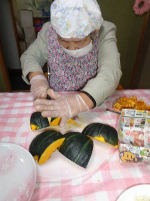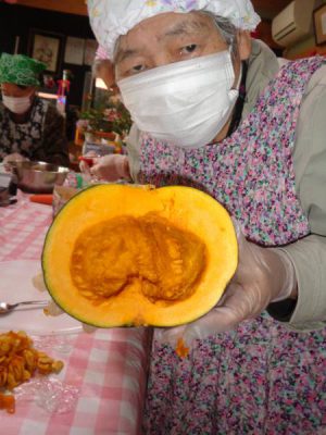 硬いカボチャもスタッフと一緒に切りました手 (チョキ)手 (チョキ)手 (チョキ)