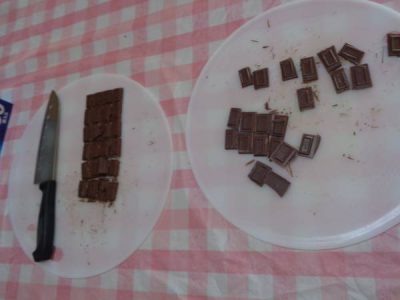 チョコレートを一口サイズにカット