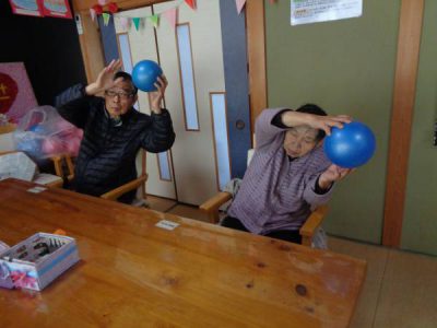 サンドイッチマンの可愛い振付で体操をしましたリボン
