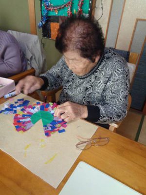 台紙に小さく切った紙を貼り付けていきますサーチ (調べる)サーチ (調べる)