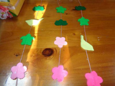 カラフルな吊るし飾りができましたね