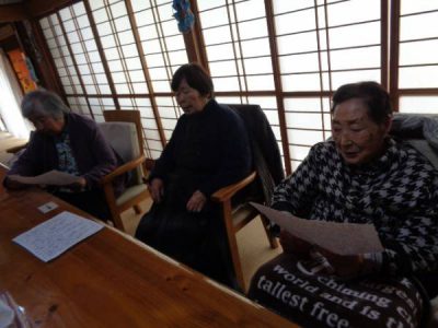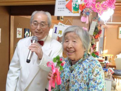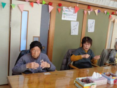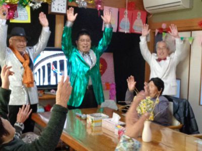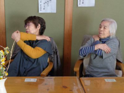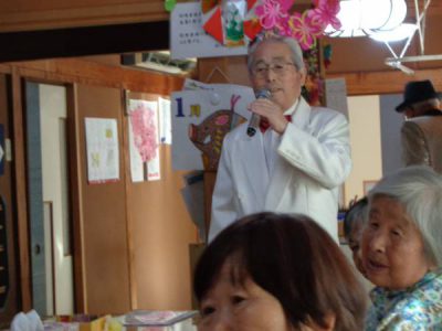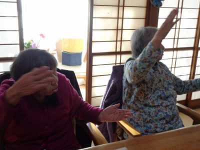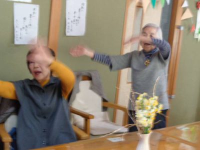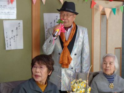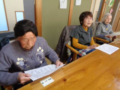 朝会、ぼけたらあかん・幸せの3か条 ・口腔体操に合唱です