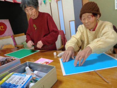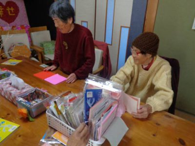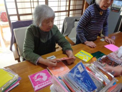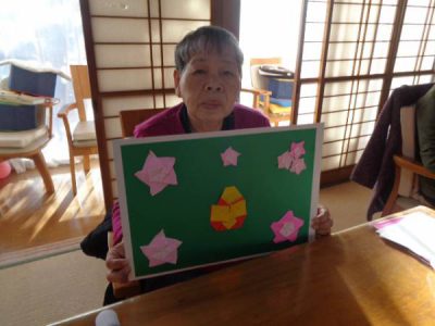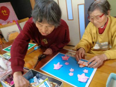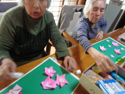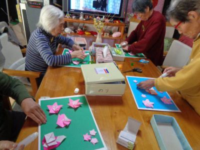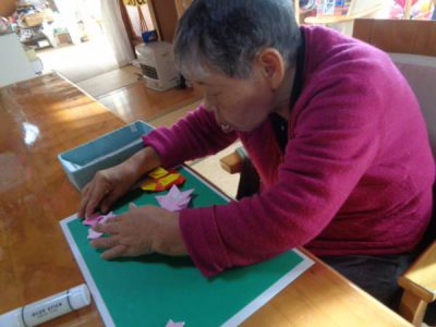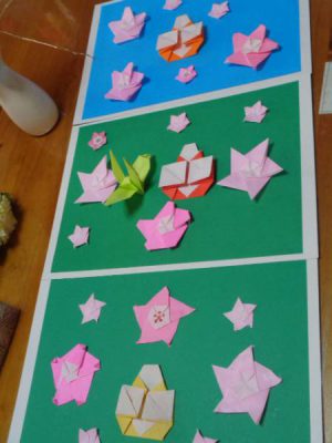 午後は、午前中に作成した折り紙を台紙に貼り付けていき