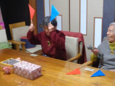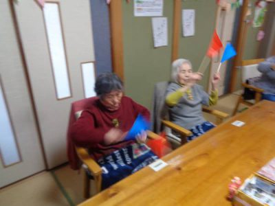 午前中のレクレーションは、『赤青旗上げゲーム』を行いま